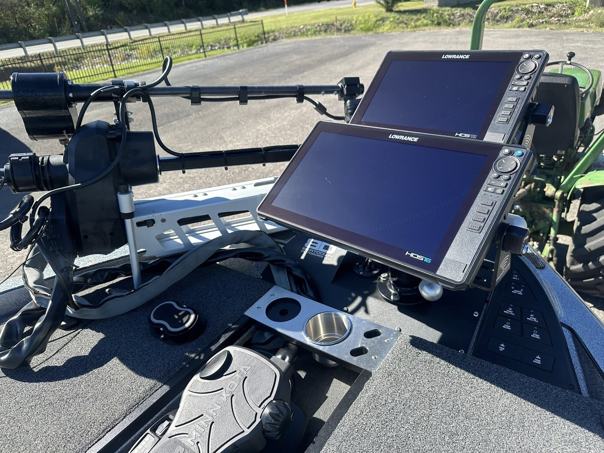 - One 16” Lowrance Pro at the bow (ideal for forward-facing scope)